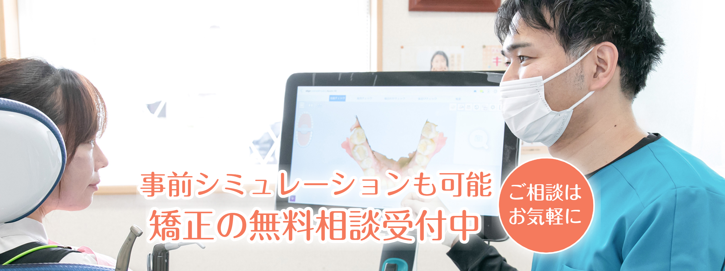 当院では矯正治療をお考えの方に、30分程のお時間をとって無料相談を行っています。